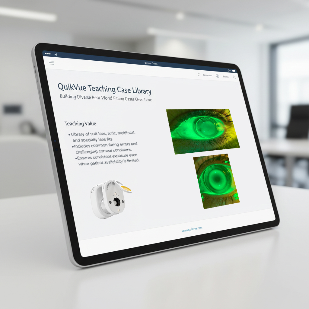 | Increases Teaching Efficiency in Busy Contact Lens Clinics Teaching clinics often have limited instructor bandwidth. QuikVue improves efficiency without sacrificing educational quality. Teaching value